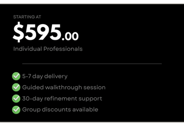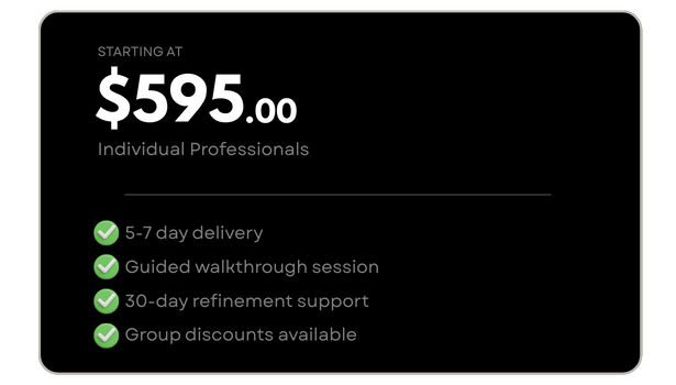 We offer pricing starting at $595 for individual professionals and offer group discounts. Network security upgrades are quoted separately based on scope. Contact us for a custom proposal.